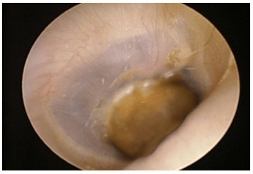 טיפת שעווה מנר-הופי על עור התוף של מטופלת (מקור – מאמר איראני שמתריע על התופעה)